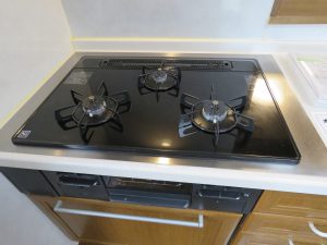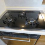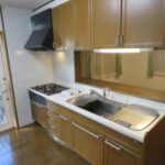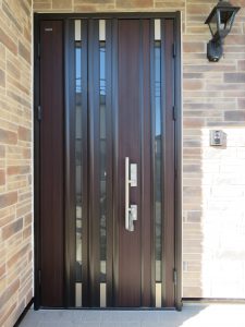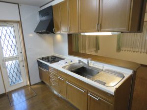 2階外壁の塗装・玄関ドアに木目調リフォームシート貼り化粧で、暖かい雰囲気に変更。 給湯器は灯油式ボイラーから、ガス給湯器変更。 システムキッチンのビルトインコンロをガラストップ交換・高気密住宅仕様に同時給排型シロッコファンも交換。